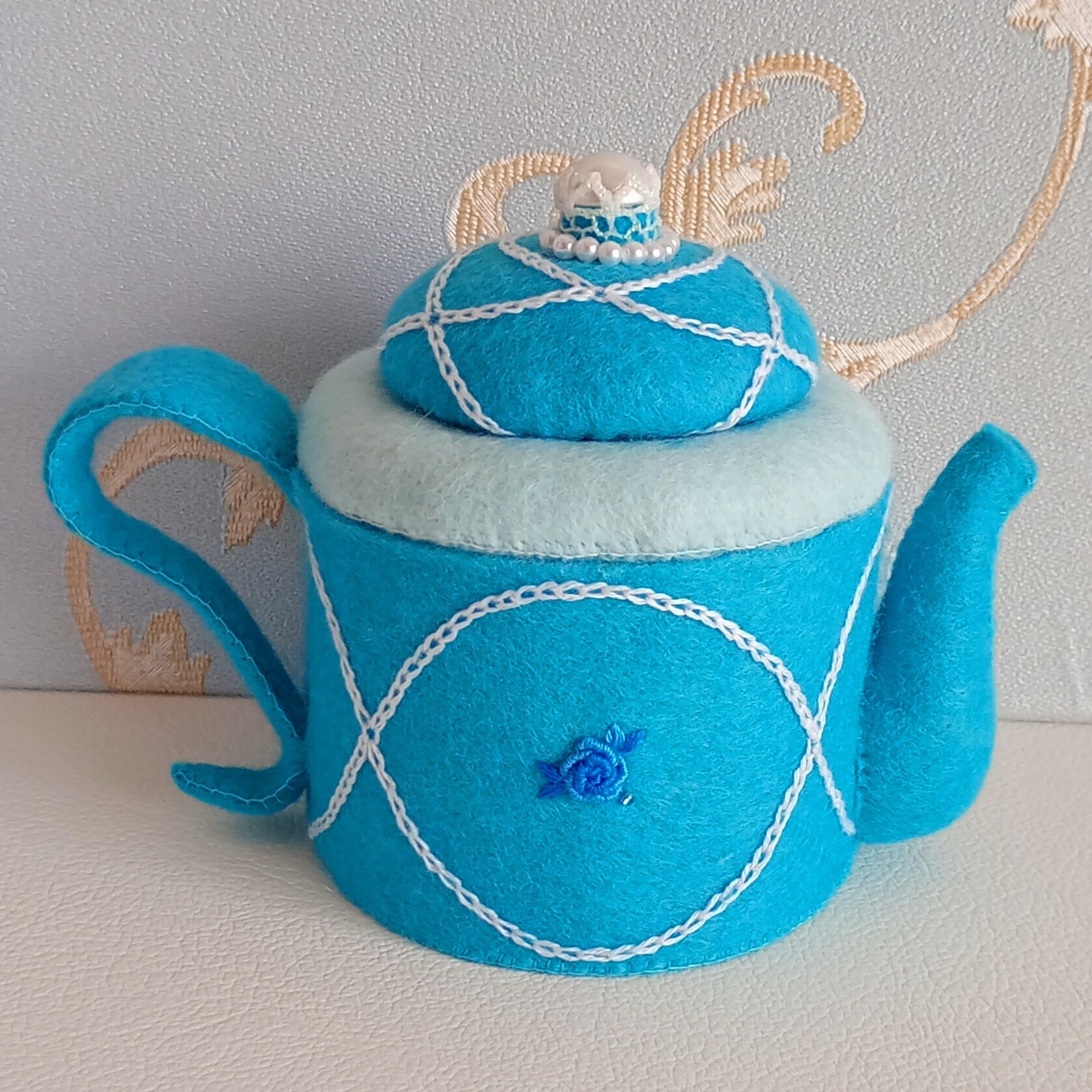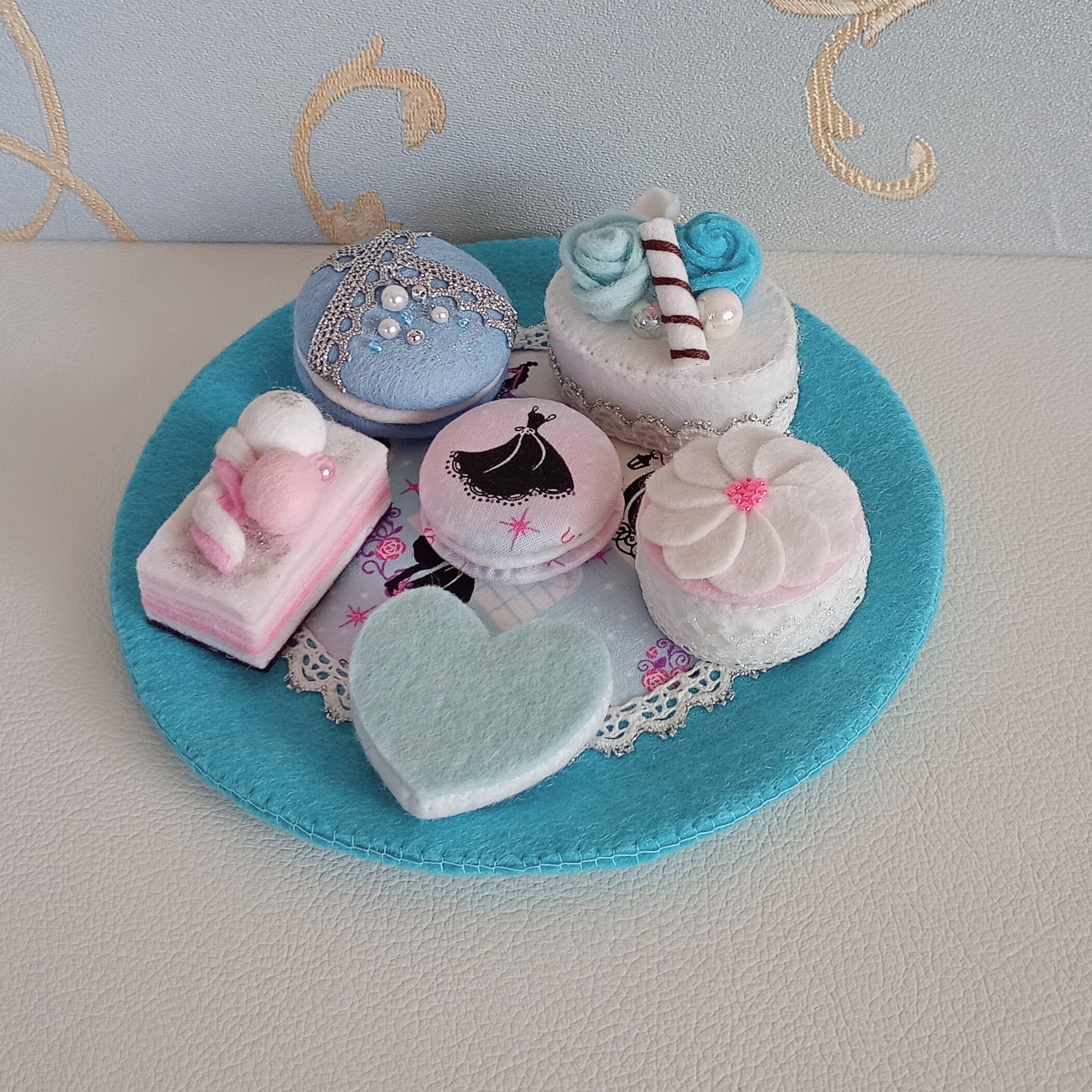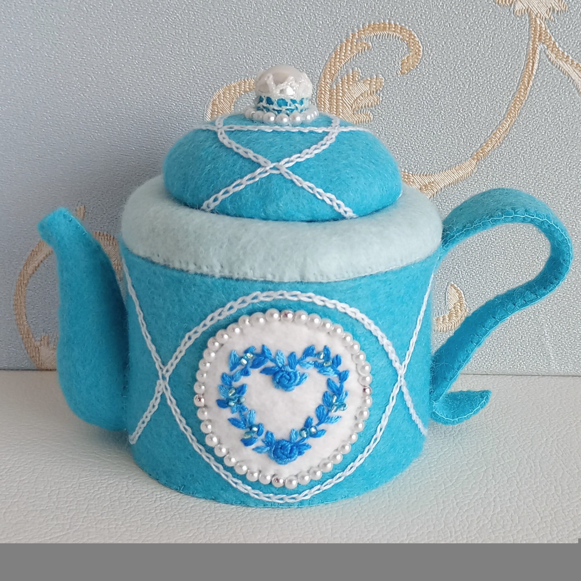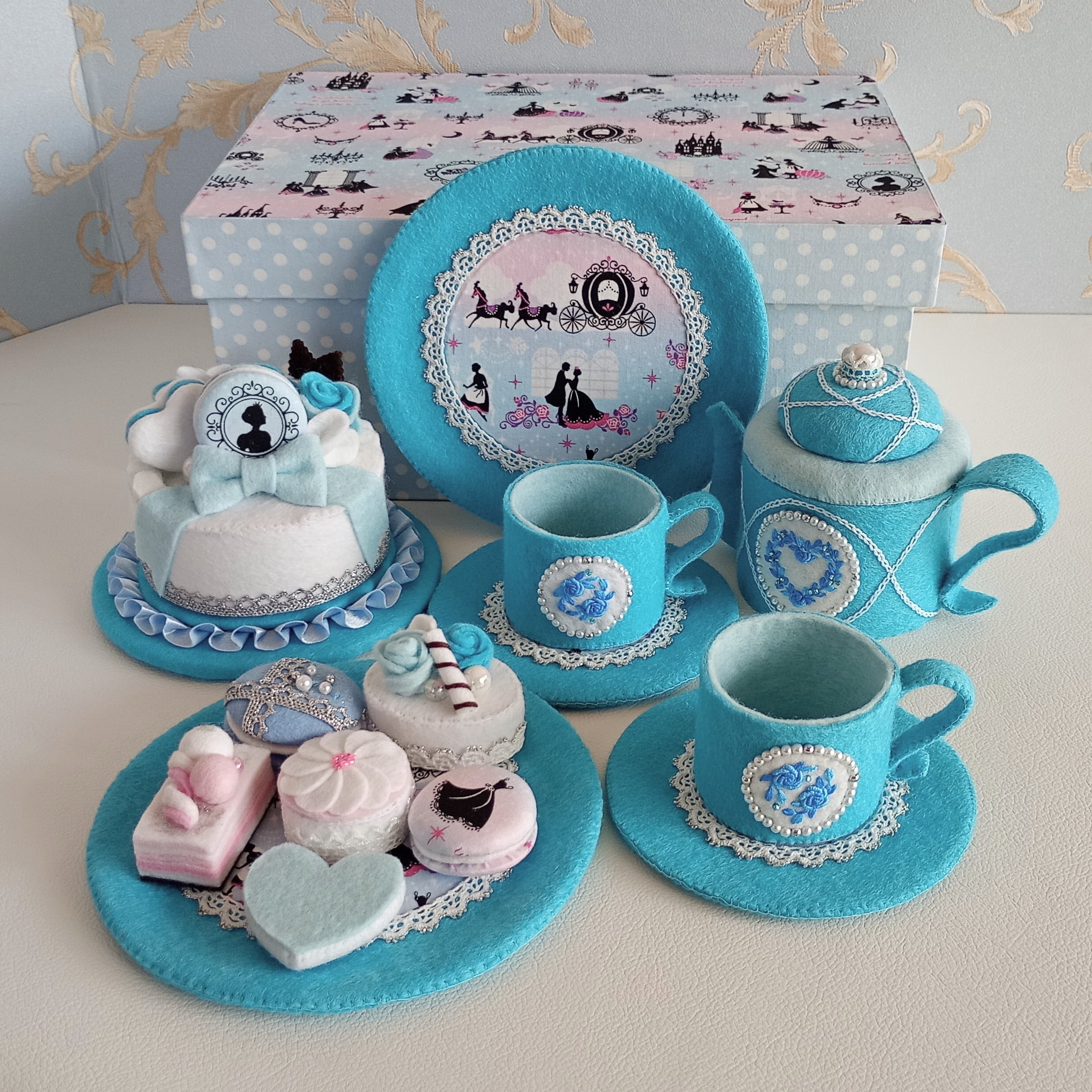 ニュアンスのあるセルリアンブルーのフェルトに刺繍をしたおままごとのティーセットです。プリンセスに憧れる女の子にぴったりの華やかなティーセットで、素敵なティーパーティーはいかがですか?お子さまの遊びが楽しく盛り上がることはもちろん、大人から見ても華やかで楽しめる“絵になるおままごと”です。