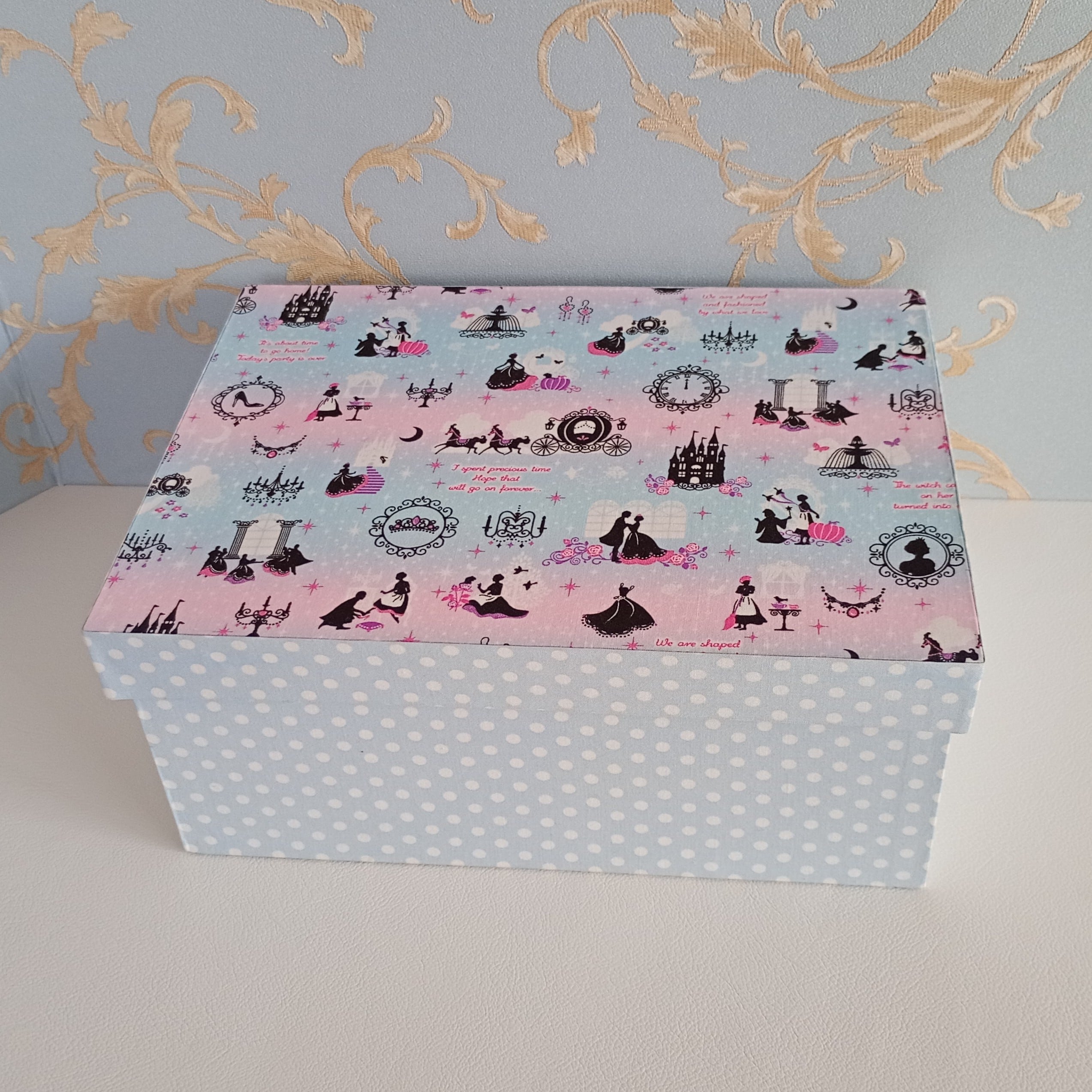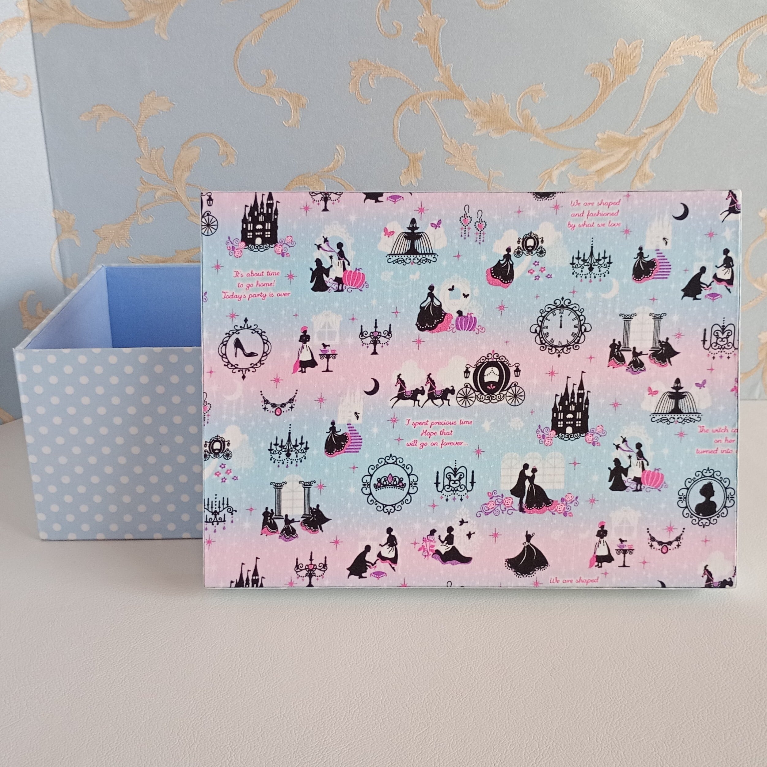 ※シンデレラの生地を貼った収納ボックスはオプション(¥8500)です。2㎜の厚紙に布地を貼ったカルトナージュボックスで、しっかりとした強度があります。ご希望の方はオプションから選択してください。