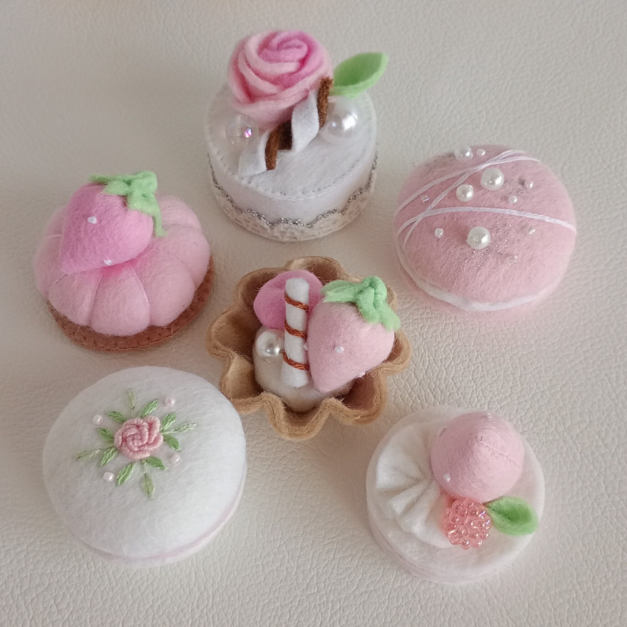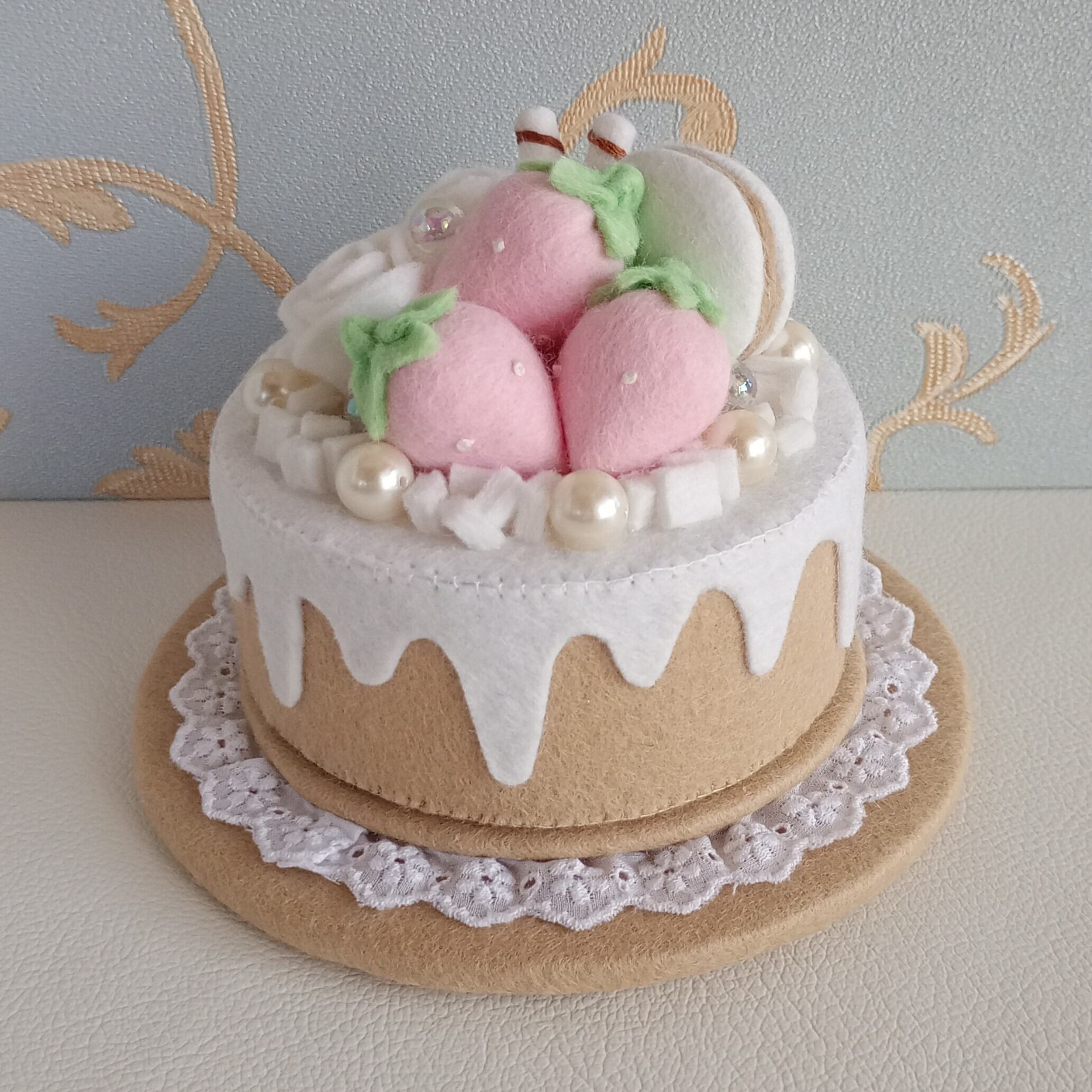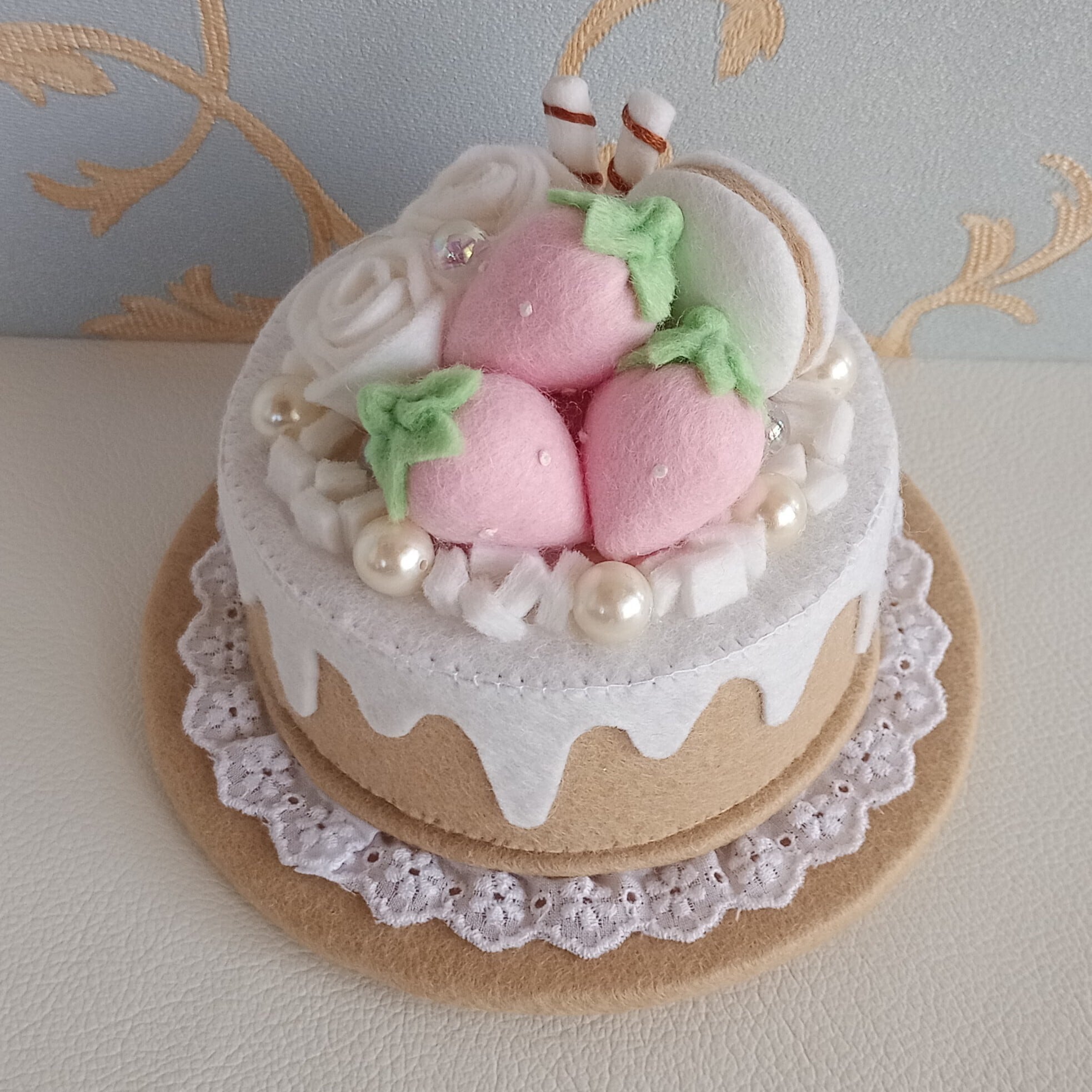 ・小菓子とホールケーキのラメは布用絵具を使用しています。